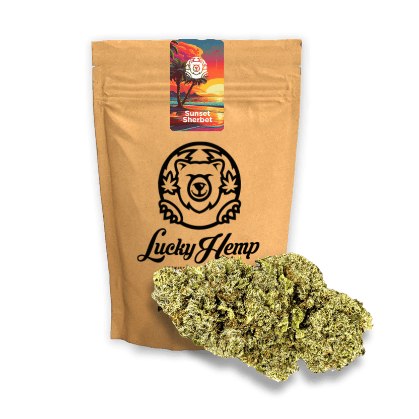 Sunset Sherbet ir hibrīds kaņepju celms, kas radies no Girl Scout Cookies un Pink Biksīšu spēcīgās ģenētikas. Šī apburošā kombinācija piešķir tai unikālu profilu, kas izceļas starp kaņepju celmiem. Tās nosaukumu iedvesmojis krāsainais izskats un saldais, desertam līdzīgs aromāts, kas saviļņo garšas kārpiņas.